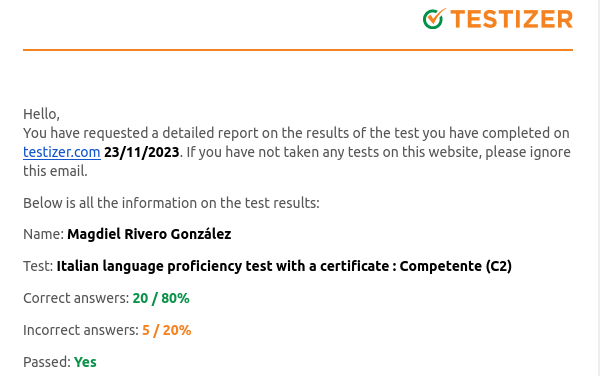 Go to testItalian language proficiency test with a certificate : Competente (C2)