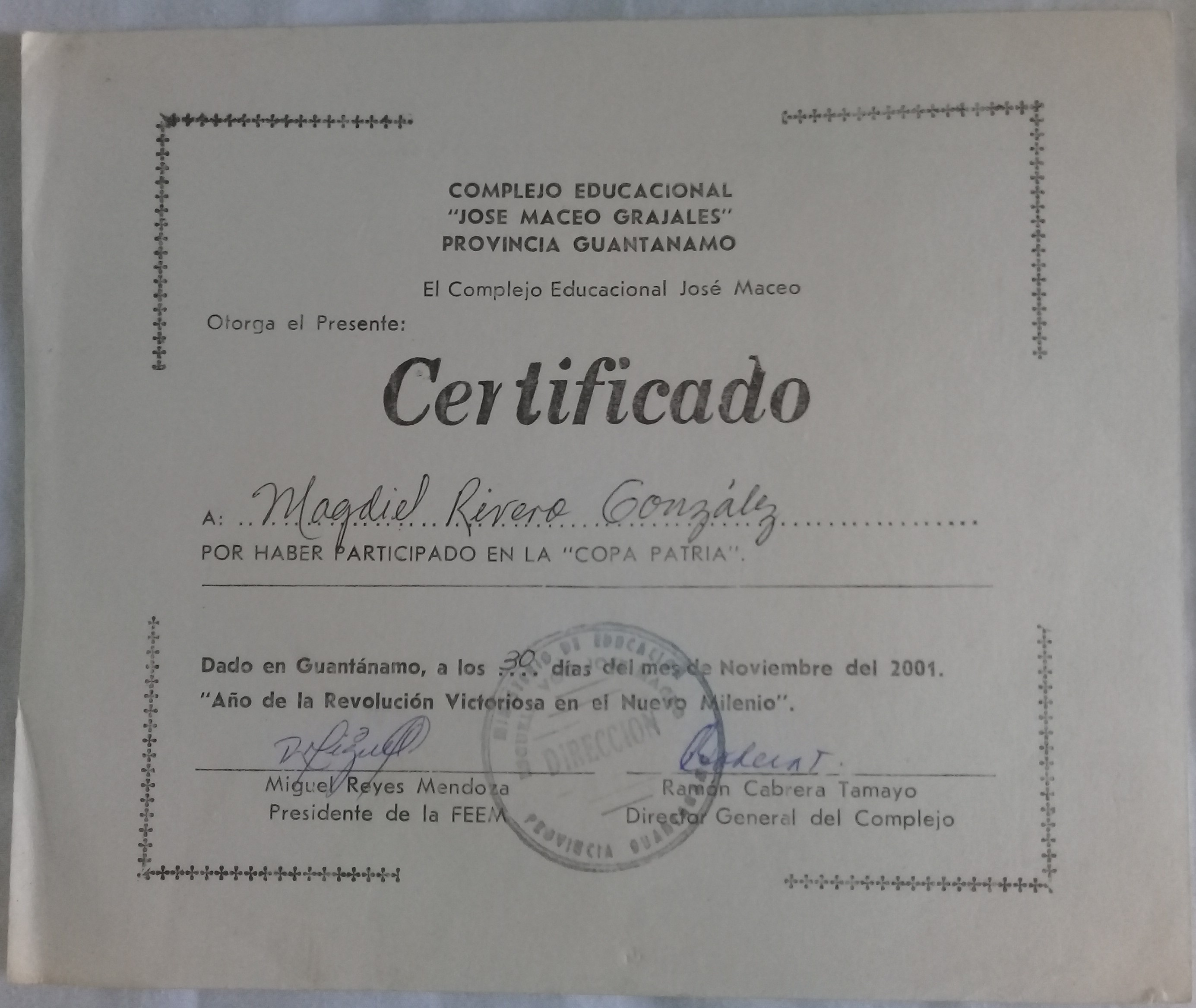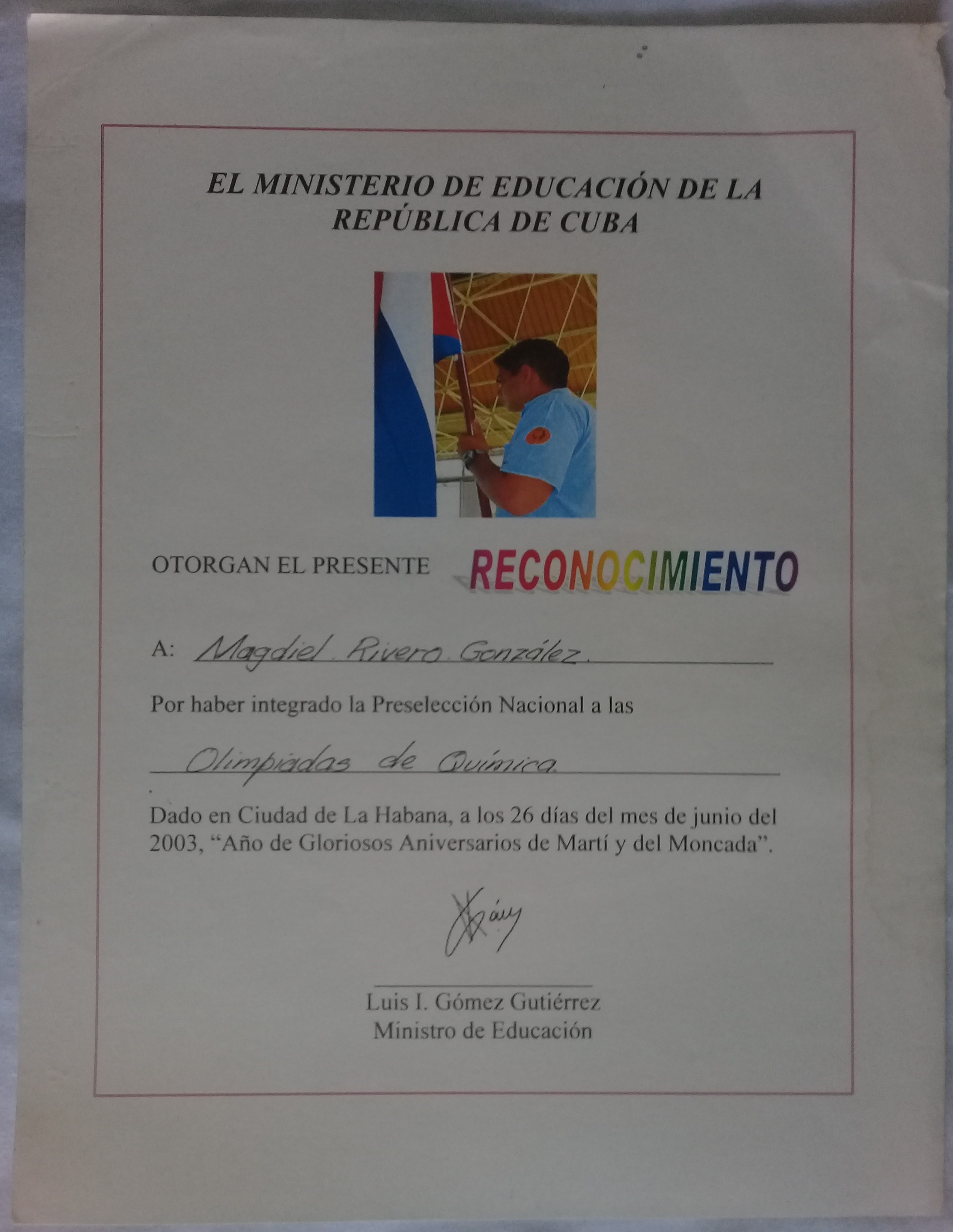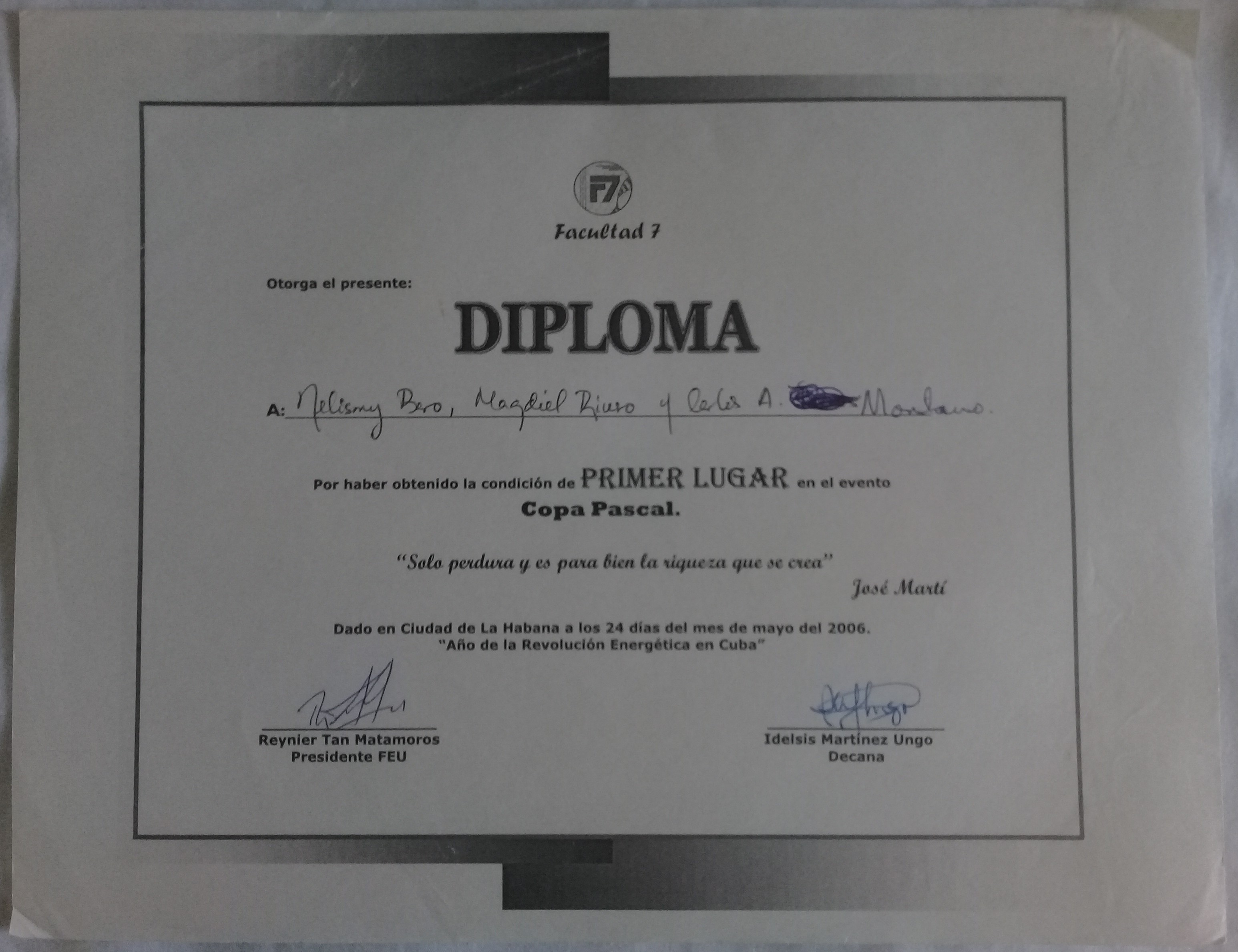 - Third place in the provincial Chemistry contest at 9th grade gaining admission to the Vocational Institute of Exact Sciences.