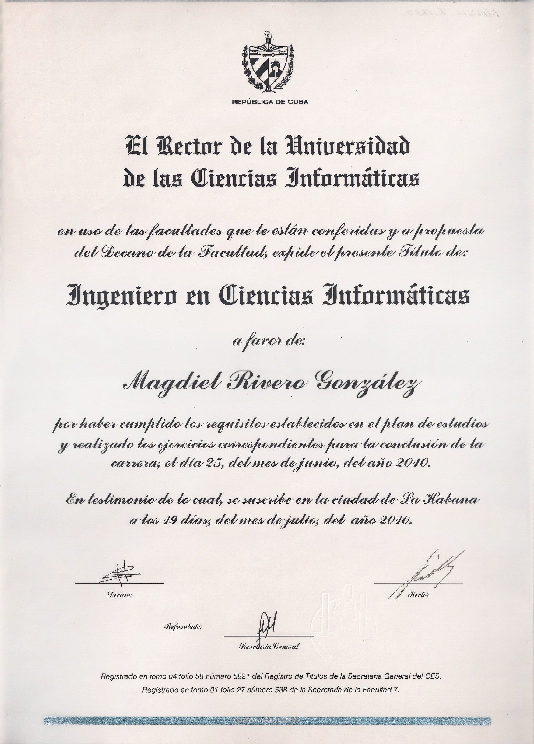 University of Informatic Sciences (UCI). Havana, Cuba · Jun 1, 2010